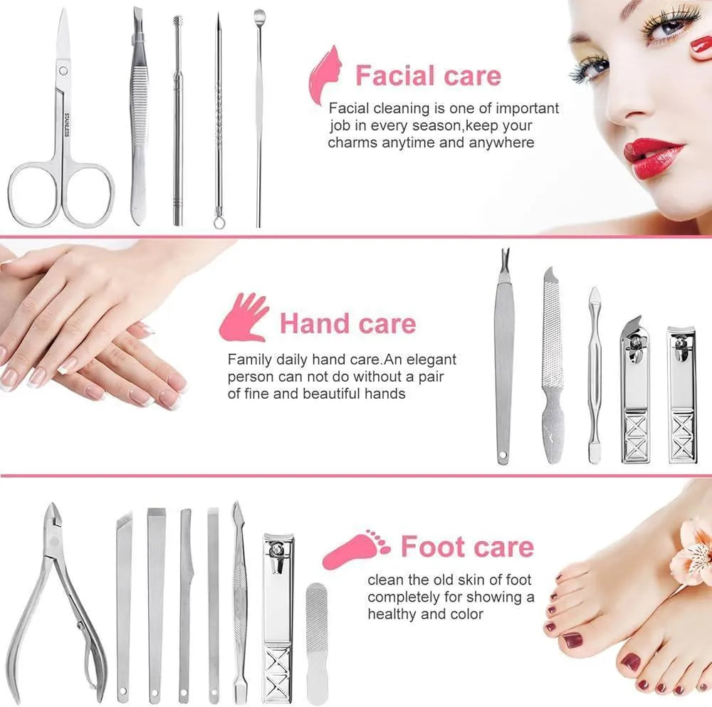 • Material: Stainless Steel• Product Feature: Dead Skin Removal, Deep Cleansing• Package Includes: 1 x Mani Pedi Kit• Note: Before using any new cosmetic product, perform a patch test on a small skin area. Verify ingredients for allergies and follow package warnings and directions.